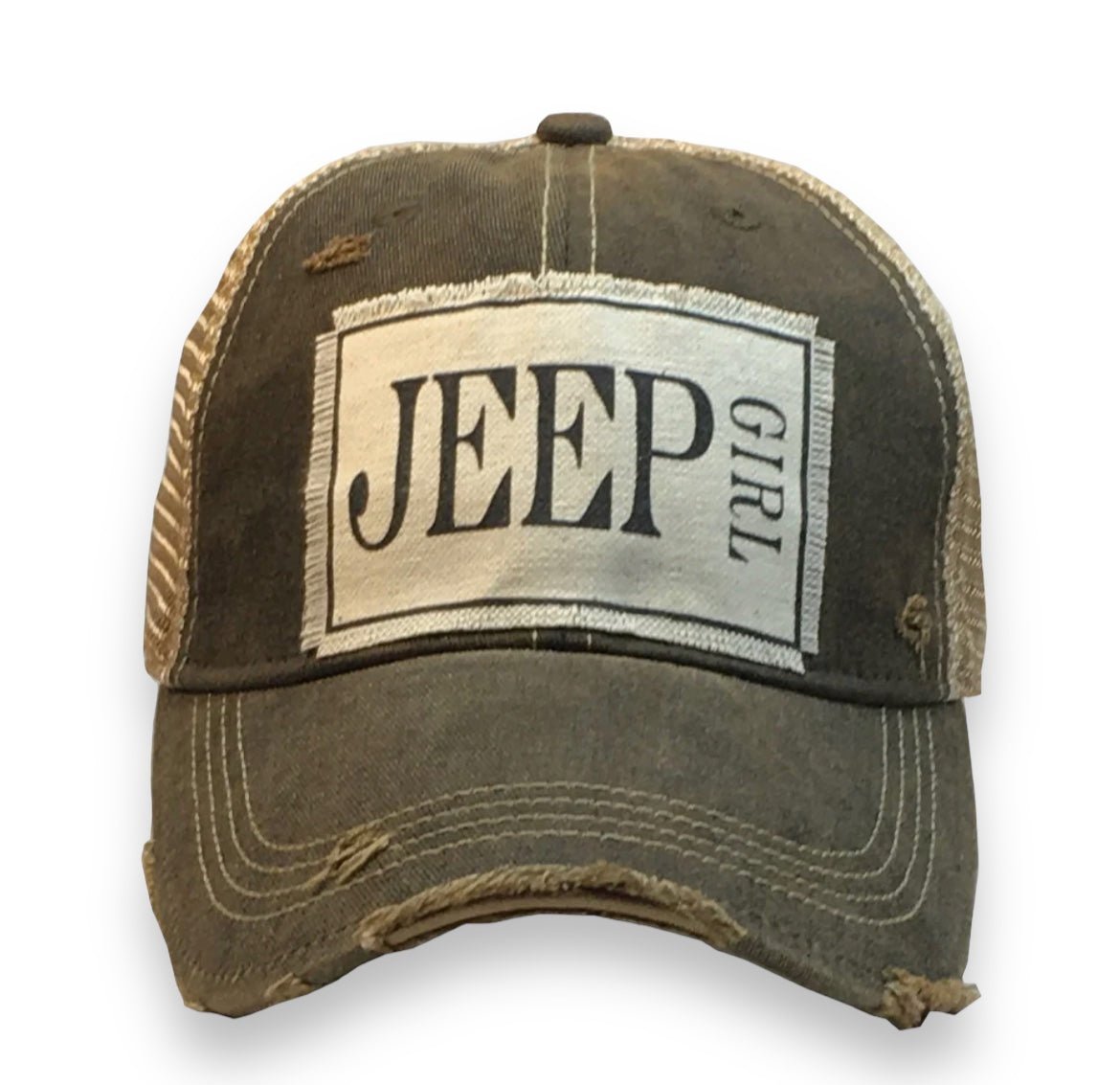 "Jeep Girl" Distressed Trucker Cap (various colors)
