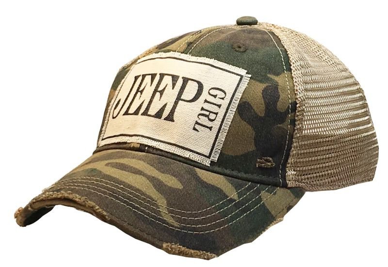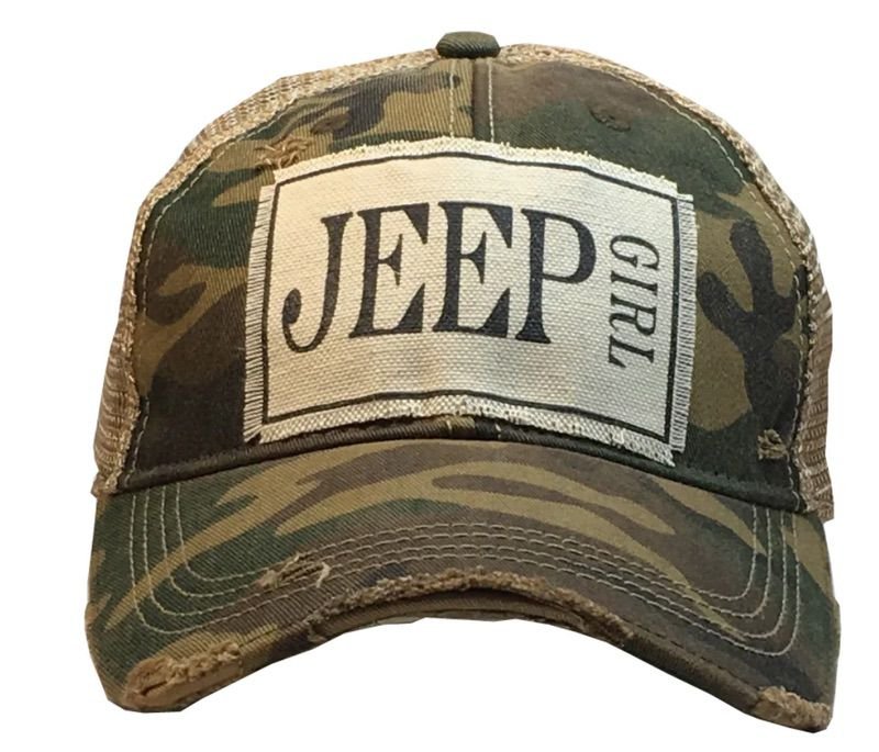 Look great in our "Jeep Girl" Vintage Distressed Trucker Cap! This classic style features a faded black distressed or camouflage front with a breathable mesh back, and the adjustable snapback strap lets it fit most. Make a statement with this trucker cap!