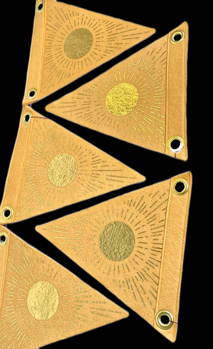 Introducing the Sunburst Mini Flag—a vibrant burst of handcrafted charm that deserves a spot in your collection! This delightful piece features premium 100% wool felt construction, measuring a perfect 9x11 inches for displaying on shelves, desks, or walls.